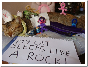 my cat really isn't. she didn't even lift and eyelid when me and my sister piled the most ridiculous things onto her, glggling all the way. we could probably have drawn all over her face and she won't wake up! haha.